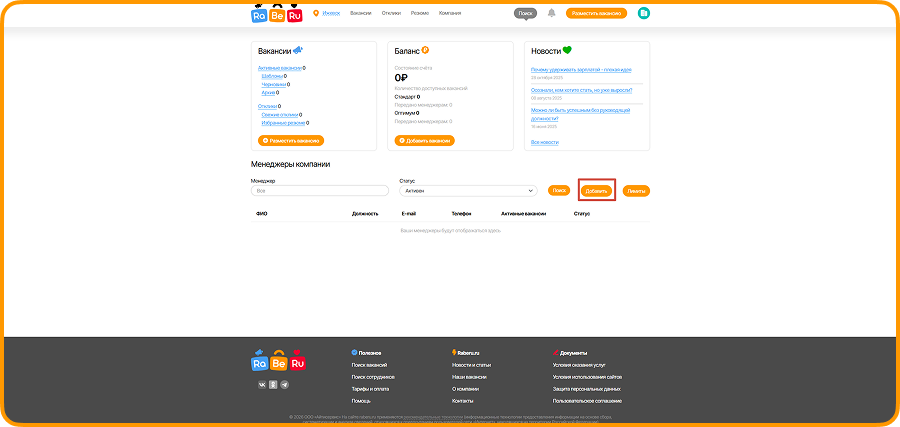 Добавление менеджера работодателя в личном кабинете позволяет делегировать задачи: размещение вакансий, взаимодействие с соискателями и откликами.