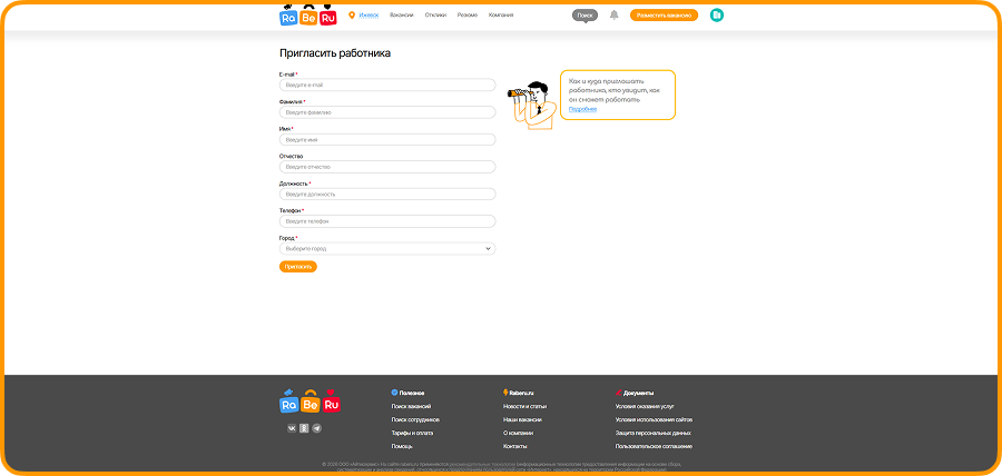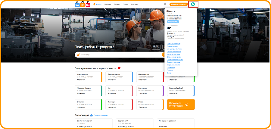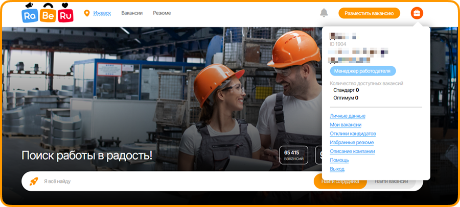 После ввода всех данных менеджер попадает в свой личный кабинет и может размещать вакансии.