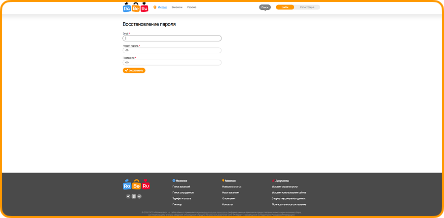 После перехода менеджеру нужно будет ввести свою рабочую почту и придумать надёжный пароль: