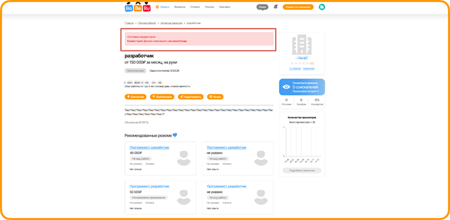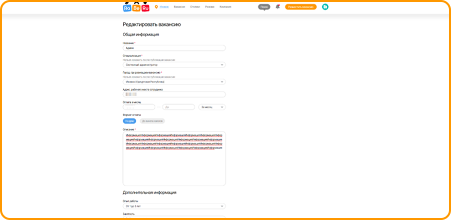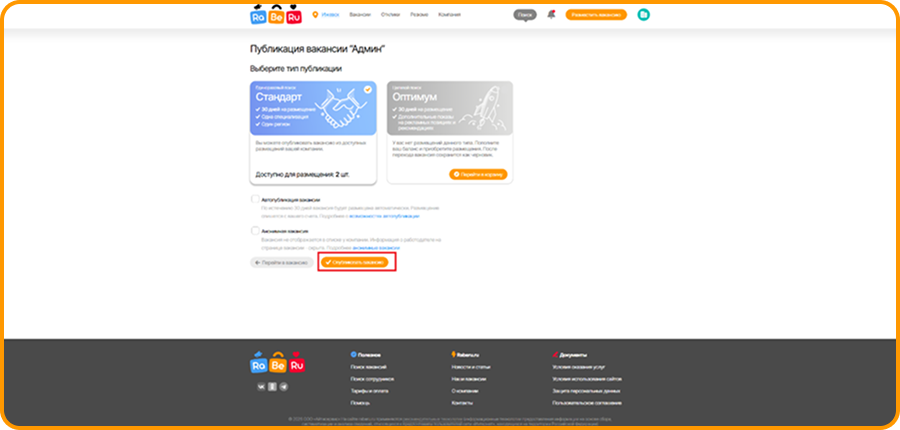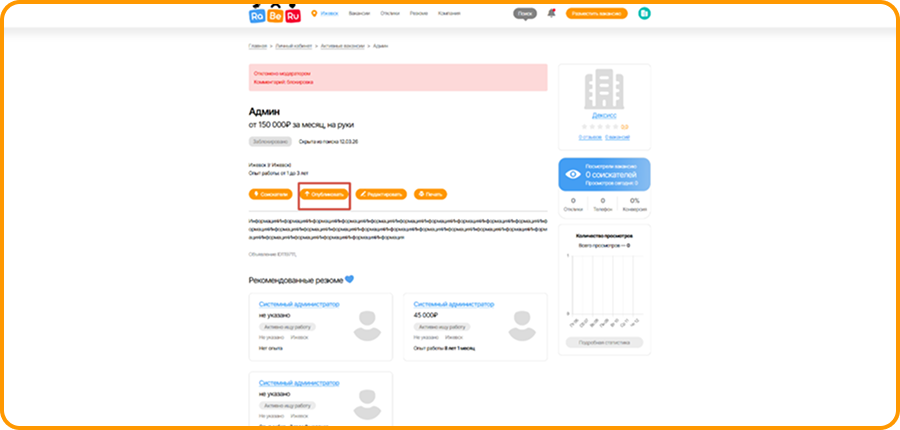 Вы снова попадаете на страницу вакансии и нажимаете кнопку «Опубликовать»: